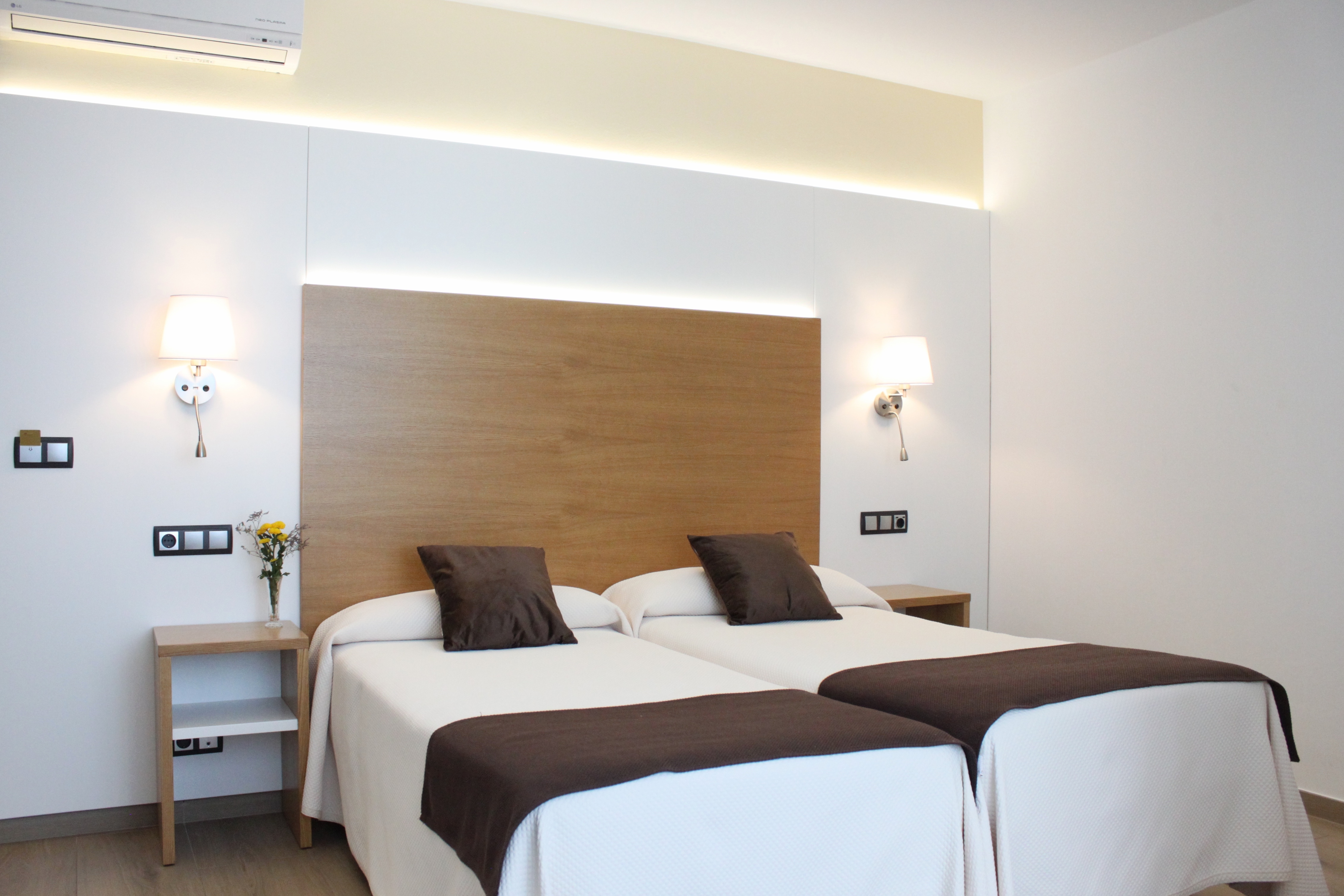 Comfortable rooms for 4 people equipped with 4 single beds, balcony and an en-suite bathroom with hairdryer, magnifying mirror and free toiletries. The room includes a 32” LCD TV with satellite channels desk, telephone, safe, air conditioning and free Wi-Fi Internet connection.